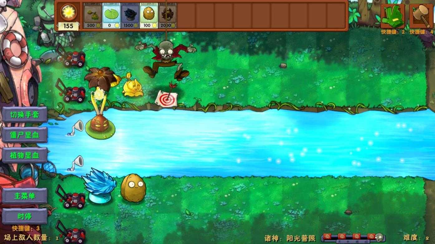 3、当第三轮黑夜开始后把前排的瓜伞全部换成阳光帝果就可以,提前准备好寒冰和火焰高坚果,在第五轮商店数到究极高坚果后就可以开始合成了。到泳池的时候先在水路合成究极高坚果,陆路先不用管。