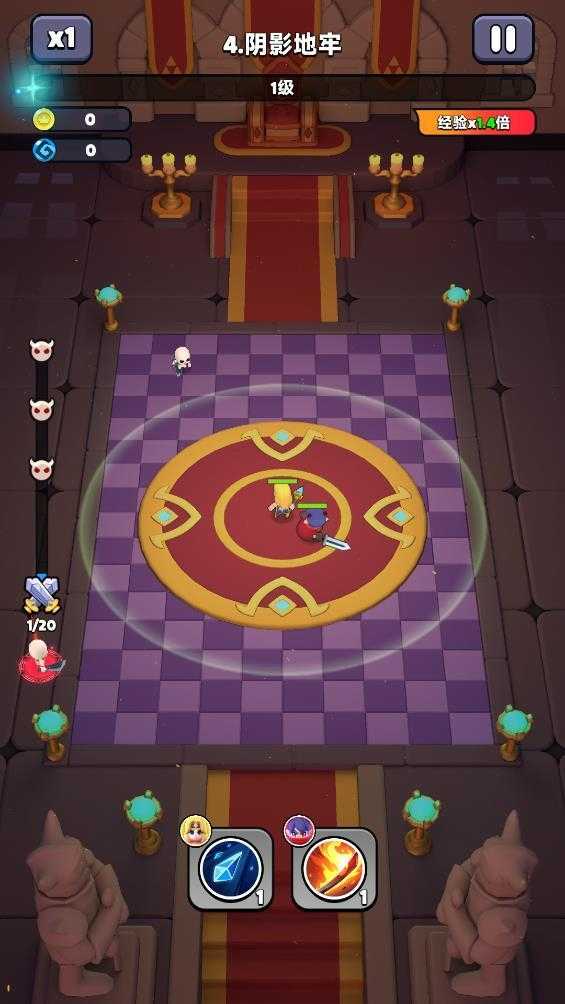 3、选择好英雄后角色会自动攻击出现的怪物,击败怪物会获得经验。