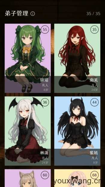 1、招募各种软萌可爱的美少女弟子,她们将会是宗门发展的核心力量,选择最喜欢的弟子,大力的进行培养吧。
