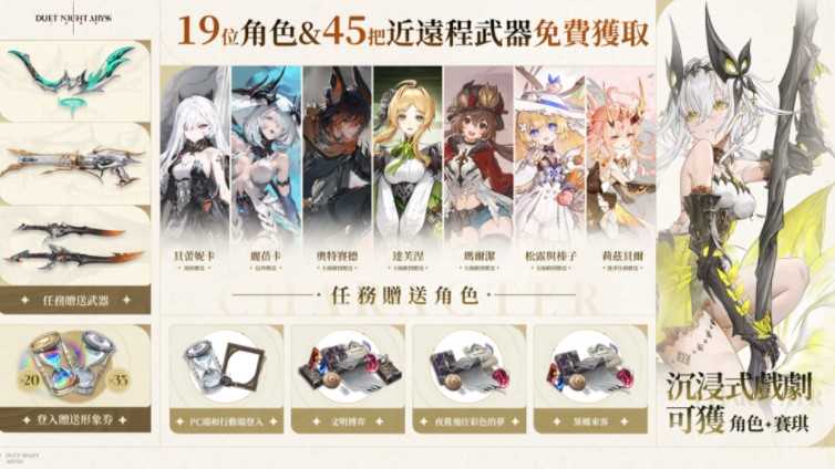 《二重螺旋》V1.0 共计开放 19 位可操作角色,包含男女双主角;还可在地图探索中解锁多个魔灵。玩家可透过完成委託密函免费获取全部角色(不受体力限制),亦可于商店直接购买所需碎片数量以解锁心仪角色。