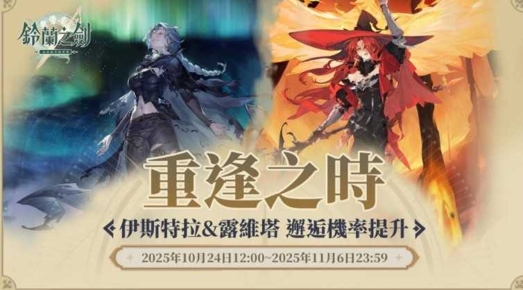 近日启动的重逢之时,为放浪不羁、追寻自由的猎魔士「伊斯特拉」及危险热烈的传奇魔女「露维塔」。「伊斯特拉」是物理攻击的突袭者,透过瞬移灵活穿梭战场,擅长反制魔法伤害。「露维塔」是擅长魔法爆发的粉碎者,可以在燃烧地形上穿梭,并为队友施加免疫燃烧的增益。还请想与他们并肩作战的团长千万不要错过!邂逅活动期间中,角色「伊斯特拉」、「露维塔」获取机率将大幅提升!