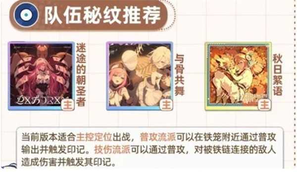 辅助推荐:带护盾、治疗或拉条技能的角色。