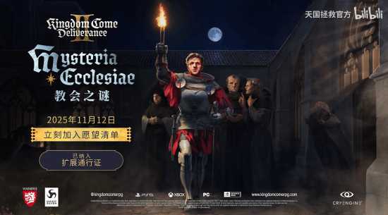 Deep Silver宣布,《天国:拯救2》的第三款剧情DLC“教会之谜” 将于2025年11月12日正式发售,玩家将前往塞德莱茨修道院调查一桩致命谜案。DLC将为游戏引入全新的故事线,包含新任务、富有趣味性的角色以及出乎意料的结局。