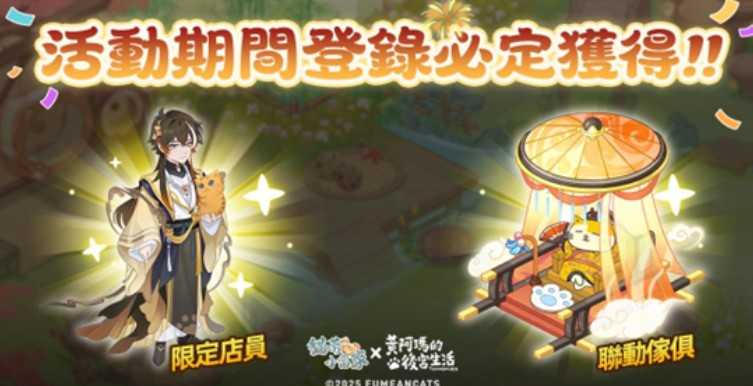 游戏与「黄阿玛的后宫生活」的限时合作提供了联动的傢俱装饰和限定店员,而且也有网红猫咪黄阿玛、三脚等大家熟悉的猫咪都会化身游戏中的虚拟小猫,不只能与他们互动,让它们入驻小店,打造专属的「黄阿玛的后宫生活」主题馆。