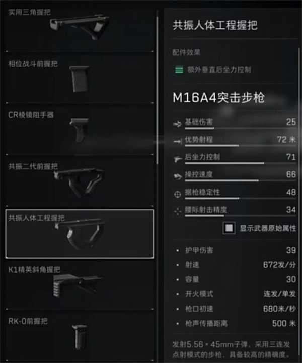 握把:人体工程学握把(降低垂直后坐力,提高连射控制)。